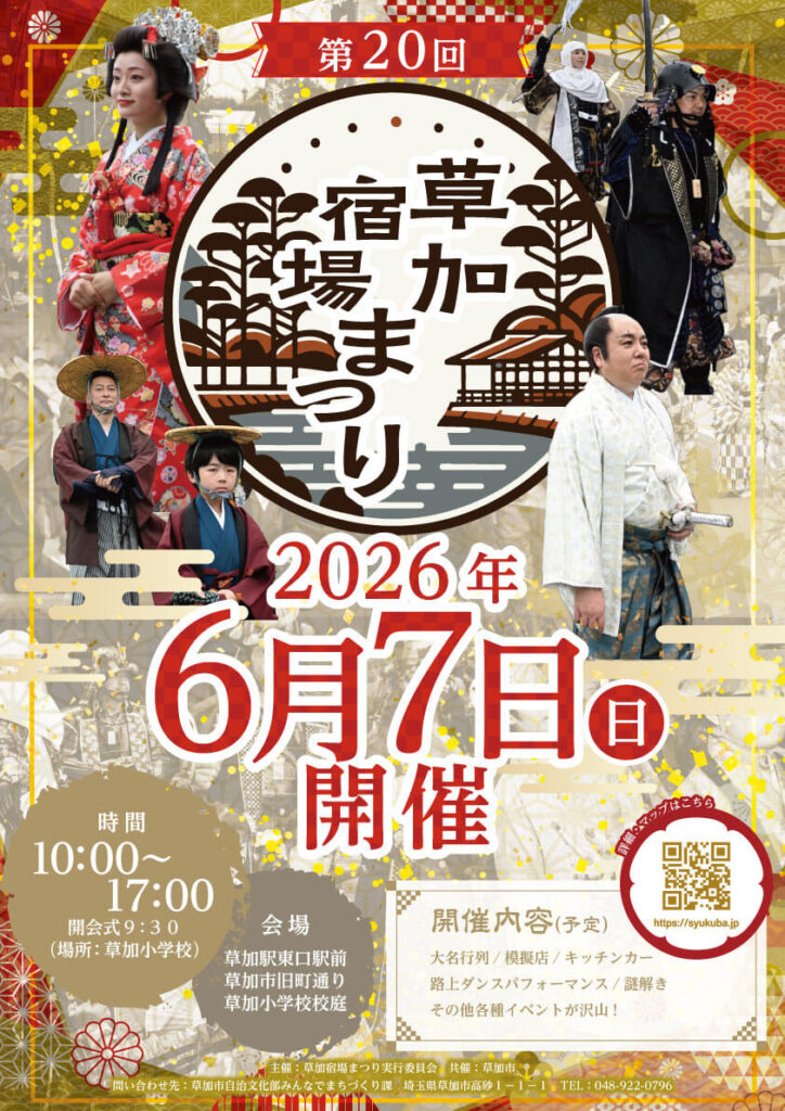 大名行列・日光街道宿場町物産展・街道パフォーマンス・旧道イベント(スタンプラリー、謎解きイベント)・今様草加宿イベント(寄席、かるた大会、路上演舞、子ども神輿)・キッチンカーの出店・SOSHOマルシェ